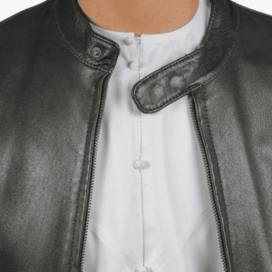 The Leather jacket EBLJI-01  is a luxurious wardrobe essential crafted from 100% genuine leather, offering the perfect balance of durability, comfort, and timeless style. Designed in Abu Dhabi, this jacket reflects a fusion of traditional craftsmanship and modern aesthetics.